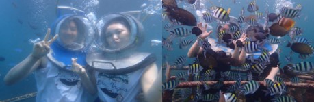 -해양스포츠의 천국 탄중베노아에서 보트타고 씨워커 장소 이동 후 바다속 체험